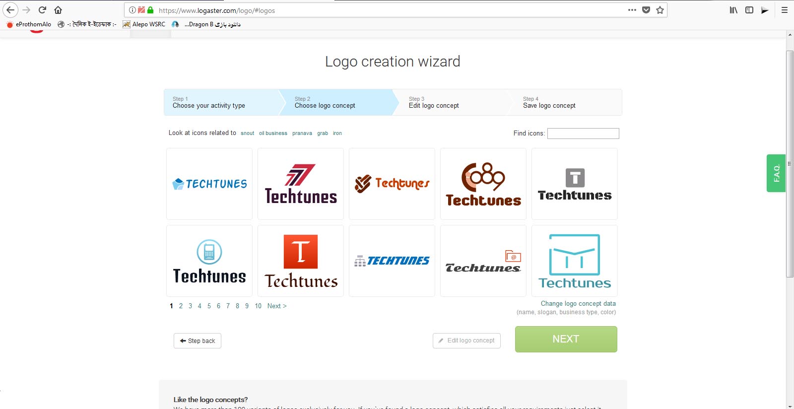 4) Now you will be shown how your style will look like business card. If you want, click on the Edit Logo concept button below to modify the current logo or select another logo .